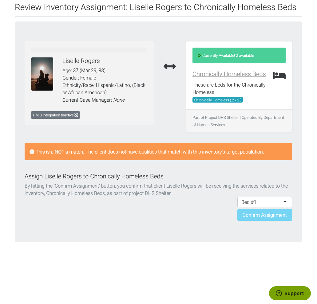 Connect clients to the appropriate beds seamlessly. Outreach Grid automatically matches clients and their needs to shelters' target populations to best identify beds for clients.