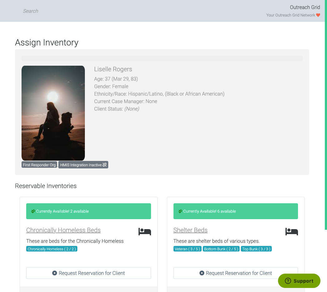 Users on the Outreach Grid Network — outreach specialists, case managers, shelter operators — can create bed reservation requests at shelters on behalf of a client. Say goodbye to daily phone calls!